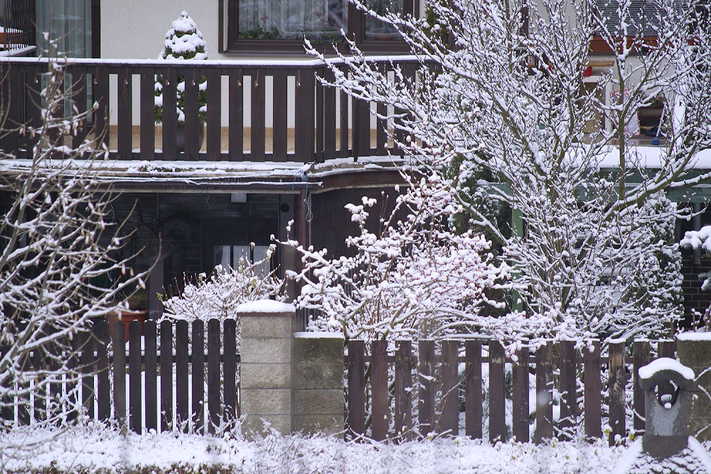 А какой-то куст, что у соседей за забором растёт, снега в этом году совсем не ожидал, и зацвёл розовыми цветами ещё неделю назад. Теперь стыдливо прикрывает расцветшие ветки снегом, чтобы соседние деревья не засмеяли.